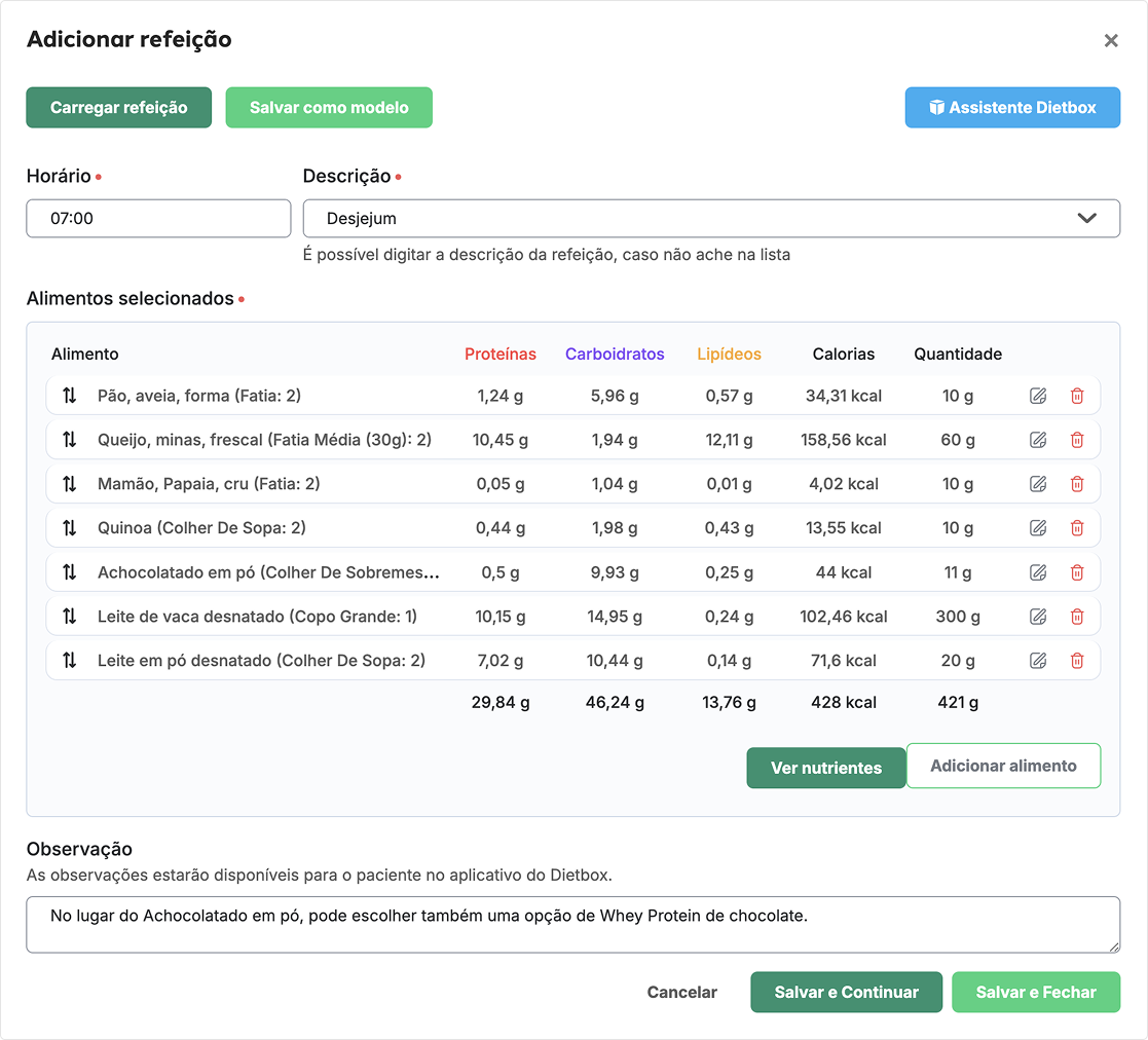 Busque por um suplemento genérico, como “Whey Protein”. A Inteligência Dietbox irá identificar a categoria e ativar a curadoria correspondente.