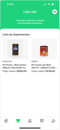 Na aba Suplementos e Produtos, o profissional pode criar Listas Personalizadas, com itens validados pelo time científico do Dietbo e pela curadoria da Liah.